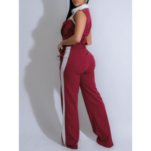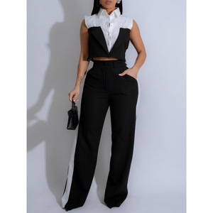 AL307 跨境欧美女装亚马逊衬衫无袖套装夏季西服两件套假两件OL