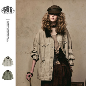 AYWTER美式复古水洗帆布工装夹克男女春秋休闲宽松全棉外套W0493