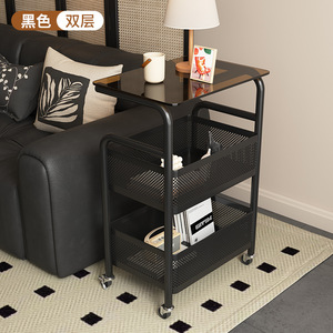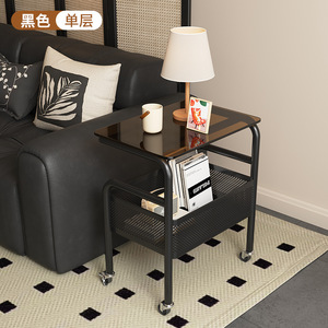 可移动奶油风床边沙发边几钢化玻璃茶几家用简约现代小推车置物架