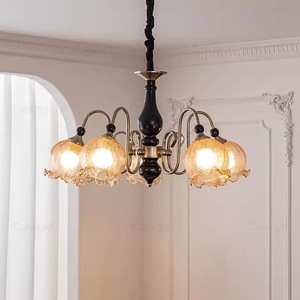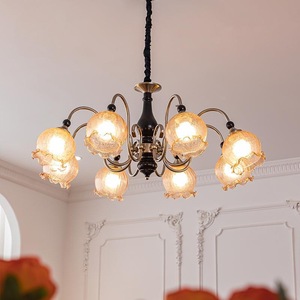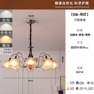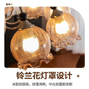 中古白蜡木客厅吊灯美式复古铃兰花朵灯法式餐厅浪漫主灯卧室吊灯