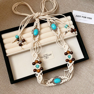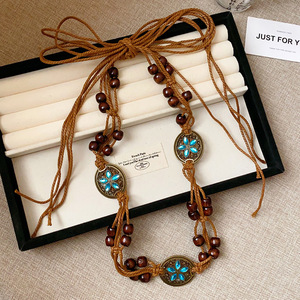 波西米亚木珠编织麻绳腰链时尚百搭简约身体链设计感小众配饰