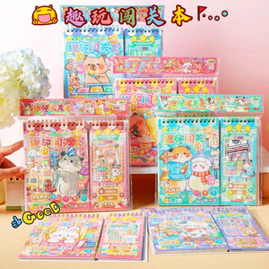 新款趣味闯关本可爱卡通造景游戏贴纸本手帐DIY场景免裁换装贴纸