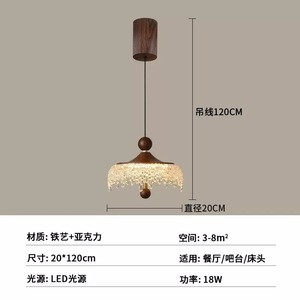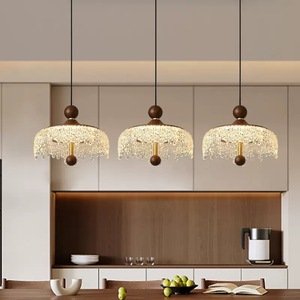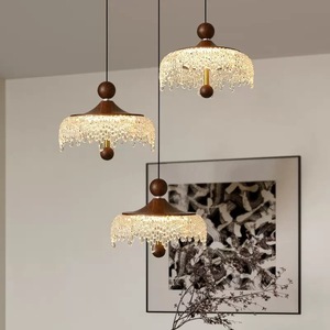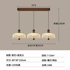 法式智能升降中古风水滴餐厅吊灯三头长盘吧台过道灯胡桃木色吊灯