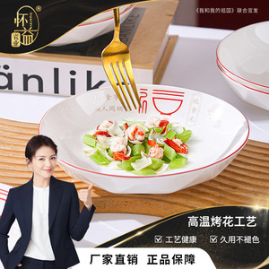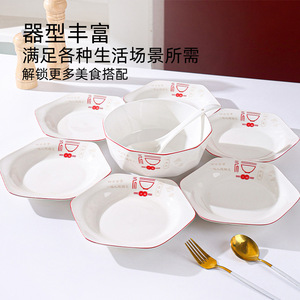 福气满满高颜值餐盘陶瓷盘子家用碗碟套装高级感高温烤花碟子菜盘