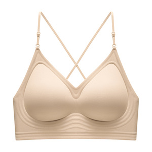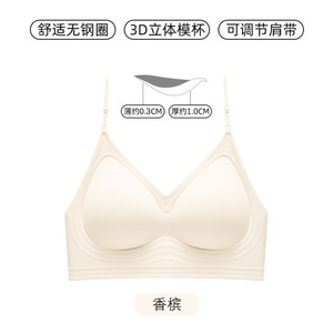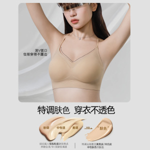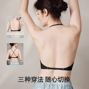 严选美背文胸无痕露背聚拢大u型挂脖吊带隐形粉底液细肩带内衣女