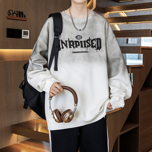 春秋季长袖圆领卫衣男孩初中学生潮牌打底衫青少年大童帅气上衣服