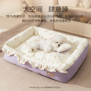 秋冬季公主风荷叶花边狗狗窝开放式带枕头猫狗床中小型泰迪宠物窝