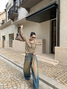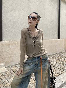 [9hour]美式POLO领长袖t恤女 2025秋季洋气百搭显瘦上衣女3726