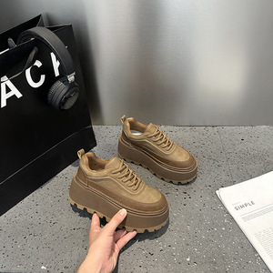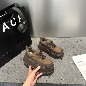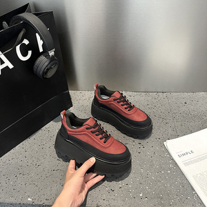 2025春秋款原创复古拼色厚底松糕鞋小个子增高女单鞋