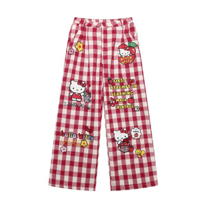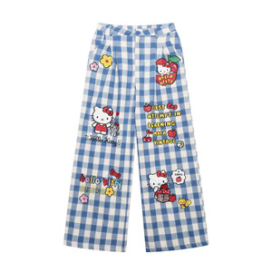 美式复古趣味卡通刺绣格子直筒休闲裤男女宽松休闲显瘦情侣阔腿裤