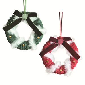 红绿毛线圣诞铃铛花环蝴蝶结车挂树挂饰礼盒装迷你花环节日氛围