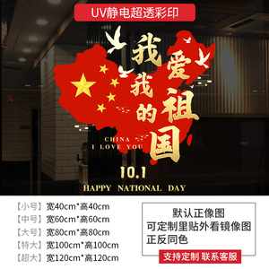 十一国庆节日氛围装饰静电玻璃贴纸商场布置氛围窗贴我爱我的祖国