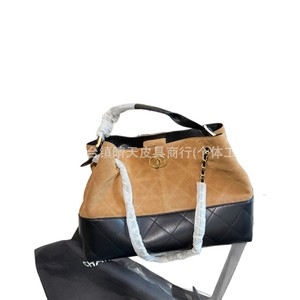 小香家链条慵懒风拼色鹿皮hobo腋下包水桶包撞色托特手提女包斜挎