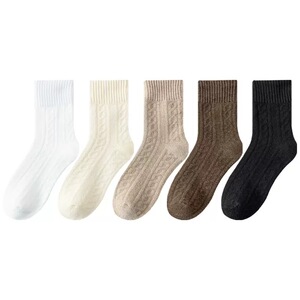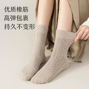厚袜子女款秋冬中筒袜加绒加厚防臭袜冬季保暖毛圈睡眠时尚纯色袜