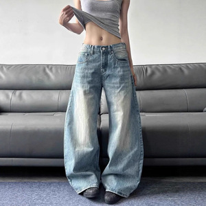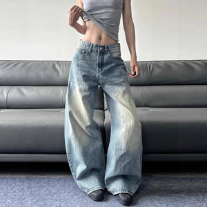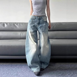 美式高街弯刀牛仔裤女夏季新款直筒休闲宽松显瘦百搭高腰阔腿长裤