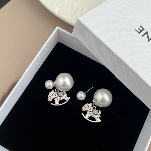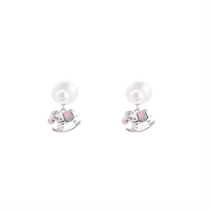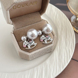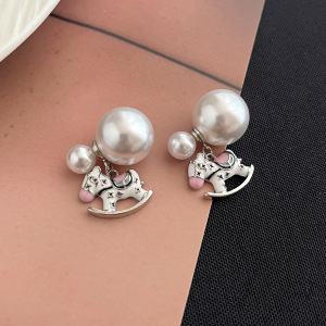 银针两戴珍珠耳钉女时尚独特小众可爱设计感彩色木马耳饰新款