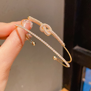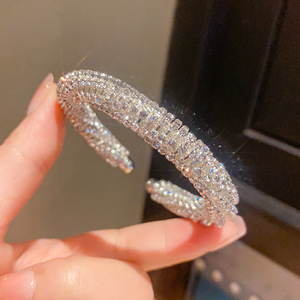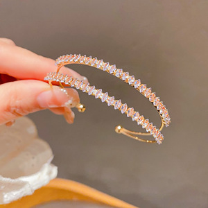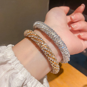 法式镶钻螺纹圆形开口手镯轻奢高级感手环精致时尚百搭手饰女批发