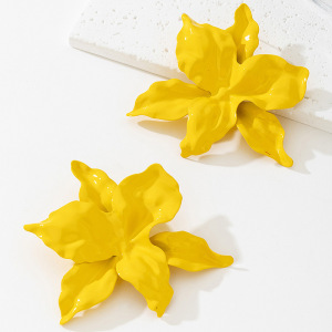 欧美跨境潮流新款喷漆大花朵女士耳钉夸张复古优雅时尚耳环耳饰品
