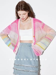 南非进口马海毛定染11色多巴胺纽扣灯笼袖毛开衫气质上衣