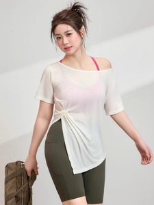 运动短袖女大码跑步大码上衣罩衫夏季宽松透气胖MM瑜伽服健身套装