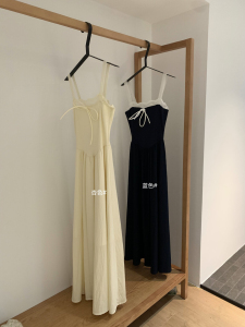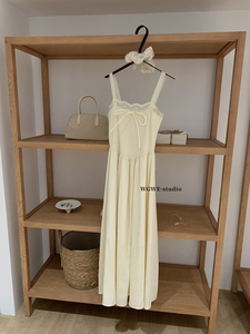 WGWE 韩系设计感蕾丝拼接绑带收腰显瘦长款吊带连衣裙仙女裙W6511