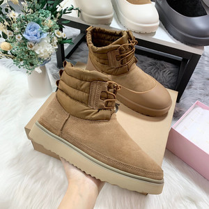 男士雪地靴系带胶套鞋靴皮毛一体男女靴情侣靴