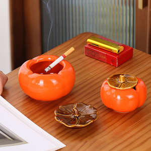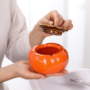 柿子烟灰缸客厅陶瓷个性潮流大号带盖烟灰缸防飞灰家用茶几烟灰缸