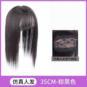 仿真头皮头顶补发块分缝35厘米三卡深棕色