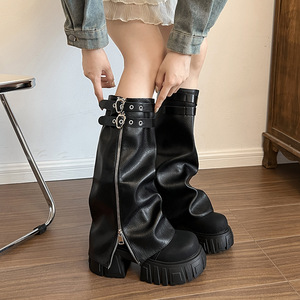 可拆卸裤管靴女2025夏季新款堆堆靴小个子厚底增高马丁靴长筒靴子