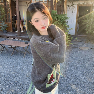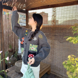 卡通刺绣毛衣外套秋季新款甜美可爱风加厚秋冬针织衫开衫宽松上衣