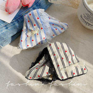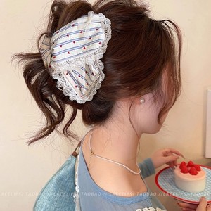 蓝条纹爱心波点三角抓夹女2025新款蕾丝花边鲨鱼夹大号后脑勺发夹