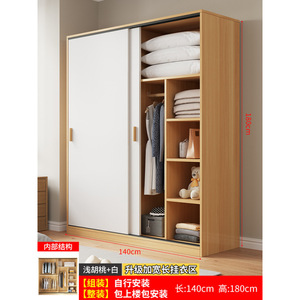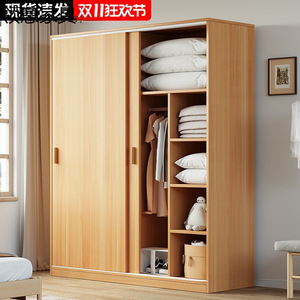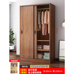 储藏经济小型木质柜子推拉门衣柜家用卧室简易组装出租房衣柜简约
