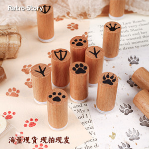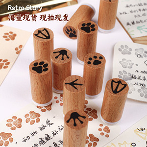 retro story木制印章 爪爪系列可爱基础图案儿童手帐打底装饰印画
