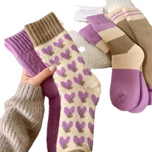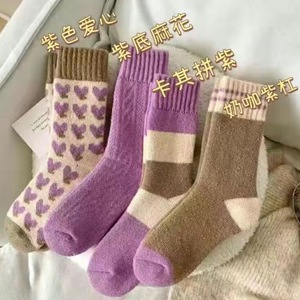 秋冬爱心少女保暖袜女中筒袜毛圈袜纯色袜子舒适百搭冬季防寒棉袜