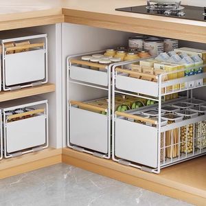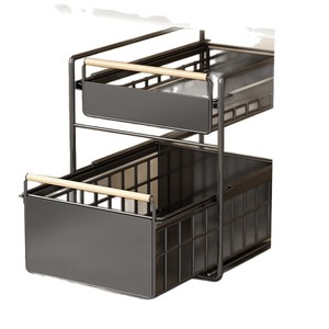 新款家用厨房橱柜内拉篮下水槽置物架双层多功能收纳抽拉式分层架