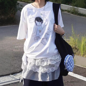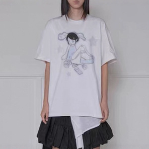 现货25新款韩国小众潮牌ins卡通插画小众少女漫画风短袖T恤上衣