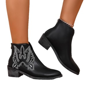 英伦风刺绣中跟短靴2025秋季跨境大码尖头后拉链切尔西靴女现货43