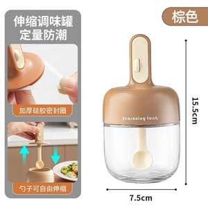 新款调料罐厨房勺盖一体调料盒家用玻璃密封调味瓶盐味精调料盒子