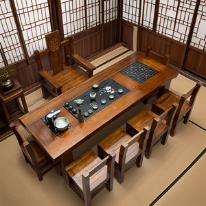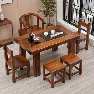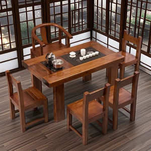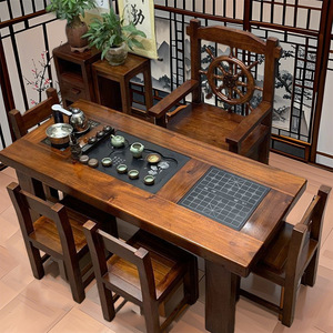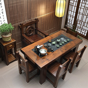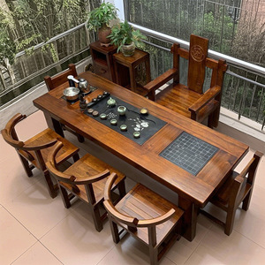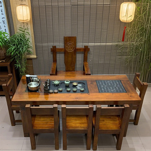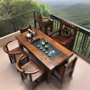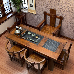 老船木茶桌椅组合实木茶台中式茶几阳台家用套装办公室功夫桌一体