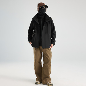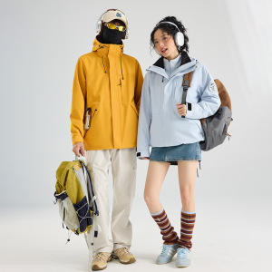75D双经双纬爆款冲锋衣三合一黑金石墨烯保暖内胆两件套情侣户外