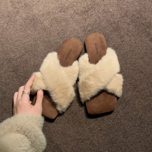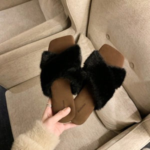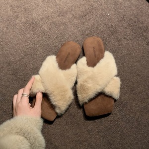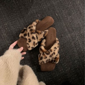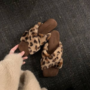 葡萄妈studiolee 气质方头交叉带懒人百搭豹纹外穿毛毛拖鞋女秋冬