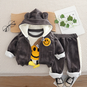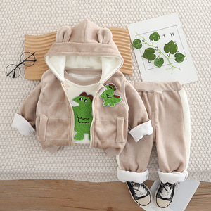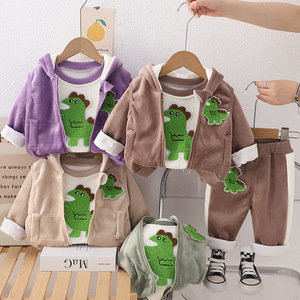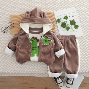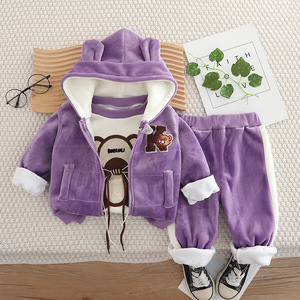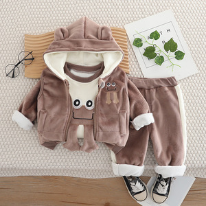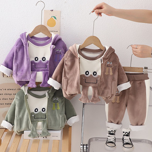男童冬装套装加绒加厚卡通马甲2025新款儿童卫衣女宝宝三件套潮