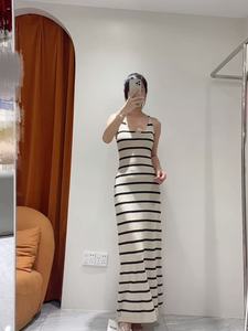 1495夏季新款法式高级感气质可甜可盐小众设计感无袖条纹连衣裙子