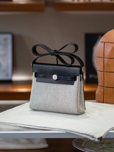 新款迷你hrebag20凯利包牛皮拼接帆布撞色斜挎包mini拼色单肩女包