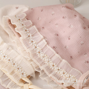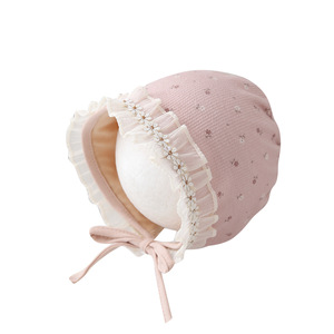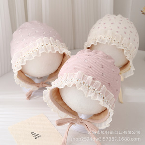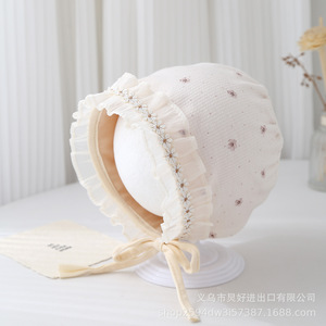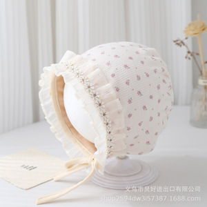 婴儿帽子韩版碎花小清新宝宝宫廷帽春秋小月龄护耳帽新生儿胎帽