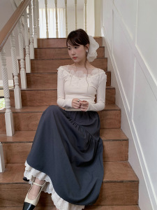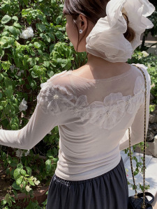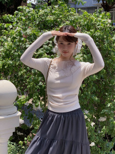 【繁花】歌铭法式复古蕾丝花朵针织衫女装秋季新款长袖上衣N109B