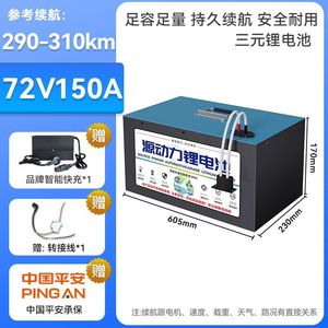 72V 【平安承保 安全耐用】-150Ah 三元【约290-310km】快充+转接-卧式