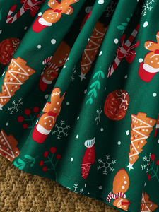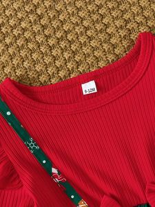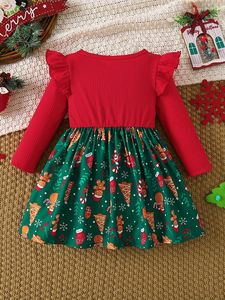 跨境INS婴幼小童女宝宝圣诞节日款飞袖长袖蝴蝶结拼接印花连衣裙