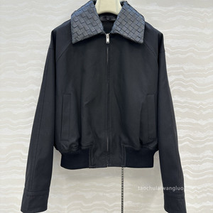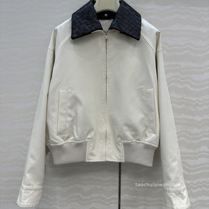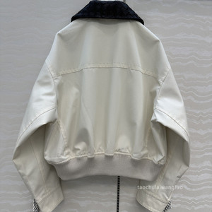 拼皮翻领长袖夹克外套 复古摩登风宽松百搭撞色开衫秋季 AW80566