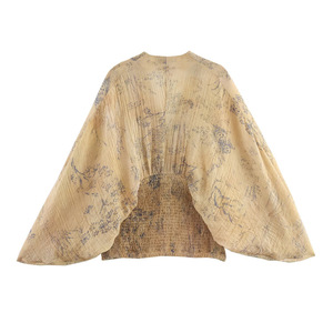 2025夏季新款女装休闲显瘦欧美跨境宽袖V领印花衬衫上衣